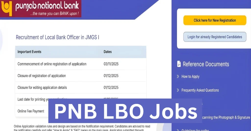 अगर आप ग्रेजुएट हैं और आपकी आयु 20 से 30 वर्ष के बीच है, तो PNB LBO Jobs 2025 आपके लिए सुनहरा अवसर है। आवेदन की अंतिम तिथि आज यानी 1 दिसंबर 2025 है। इसलिए बिना देरी किए तुरंत ऑनलाइन आवेदन प्रक्रिया पूरी करें।
