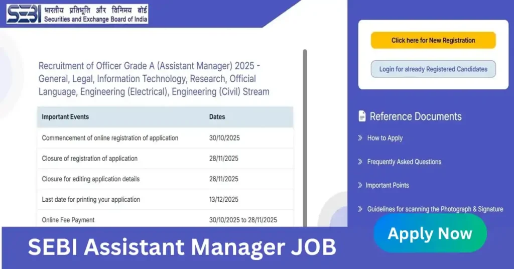 SEBI Assistant Manager Jobs 2025: आज से शुरू हुई आवेदन प्रक्रिया, जानें डेडलाइन और जरूरी डिटेल्स